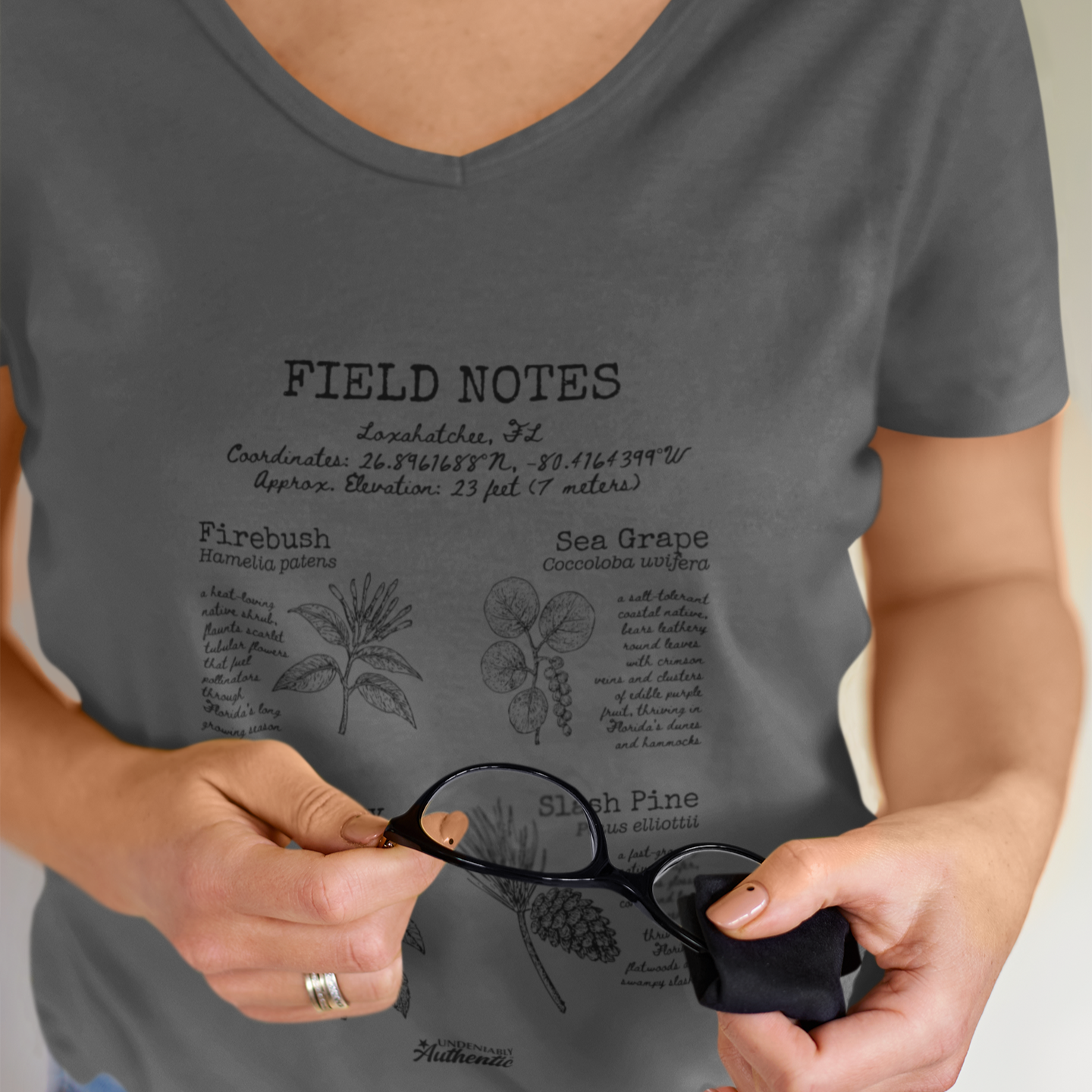Loxahatchee Rustic Plant Field Notes V-Neck T-Shirt