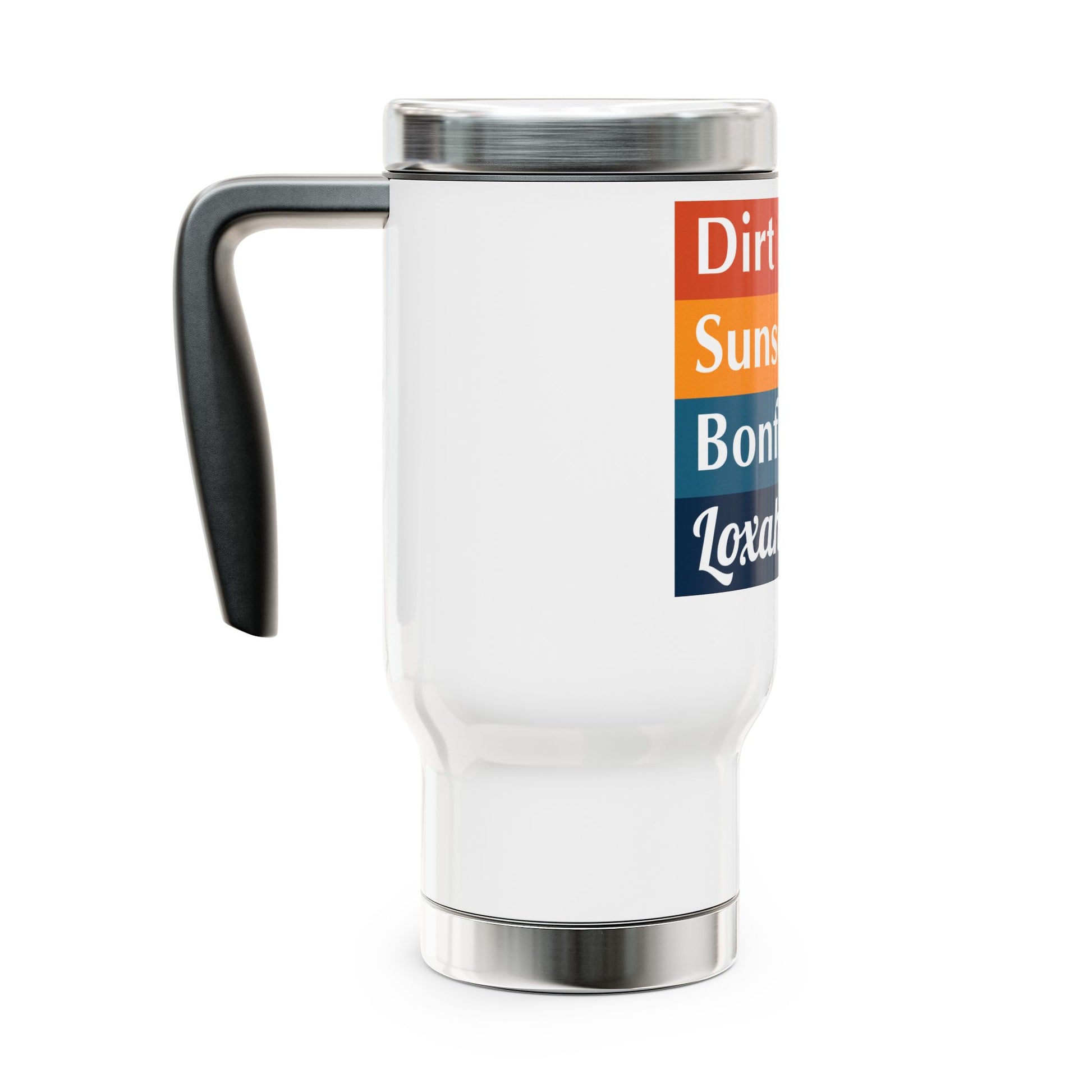 Take to the great outdoors with your favorite beverage in hand, all thanks to these custom stainless steel travel mugs. Each mug holds 14 oz. of your favorite beverage and is made with adventure-friendly stainless steel. With a glossy white enamel finish, a spill-resistant and snap-on cap, as well as a lined-in insulating plastic, this mug combines character with an explorer's favorite; practicality.